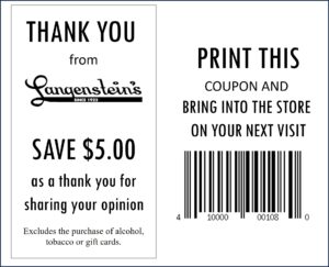 Print out the coupon below and bring to the store during your next visit. Thanks so much for your input.