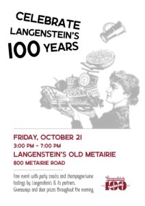 Langenstein’s 100 Year Event in Old Metairie – Friday, October 21