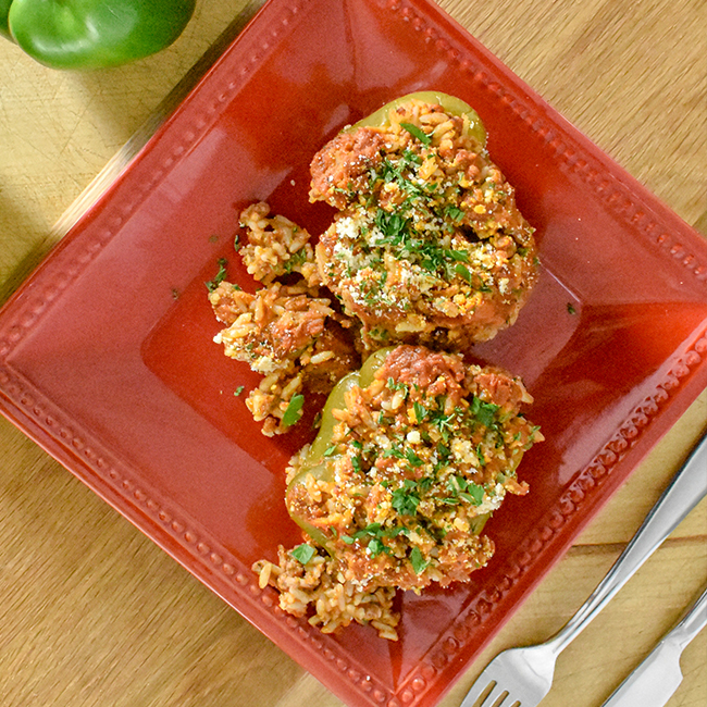 Served as a 2-pack of stuffed bell peppers.